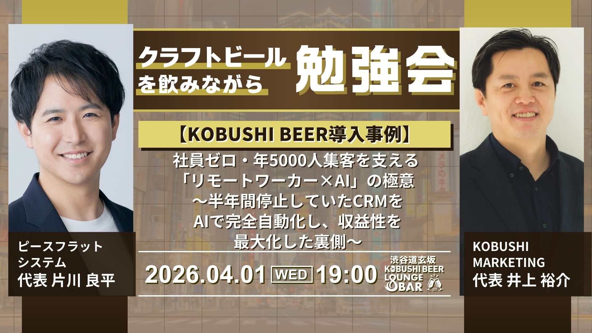 - ●KOBUSHI BEERコミュニティスポンサー限定の交流会 渋谷とKOBUS…