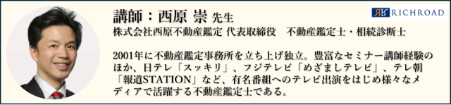 日テレ「スッキリ」、テレビ朝日「報道STATION」など、有名メディア出演歴多数の不動産鑑定士・相続診断士の先生に登壇いただきます。